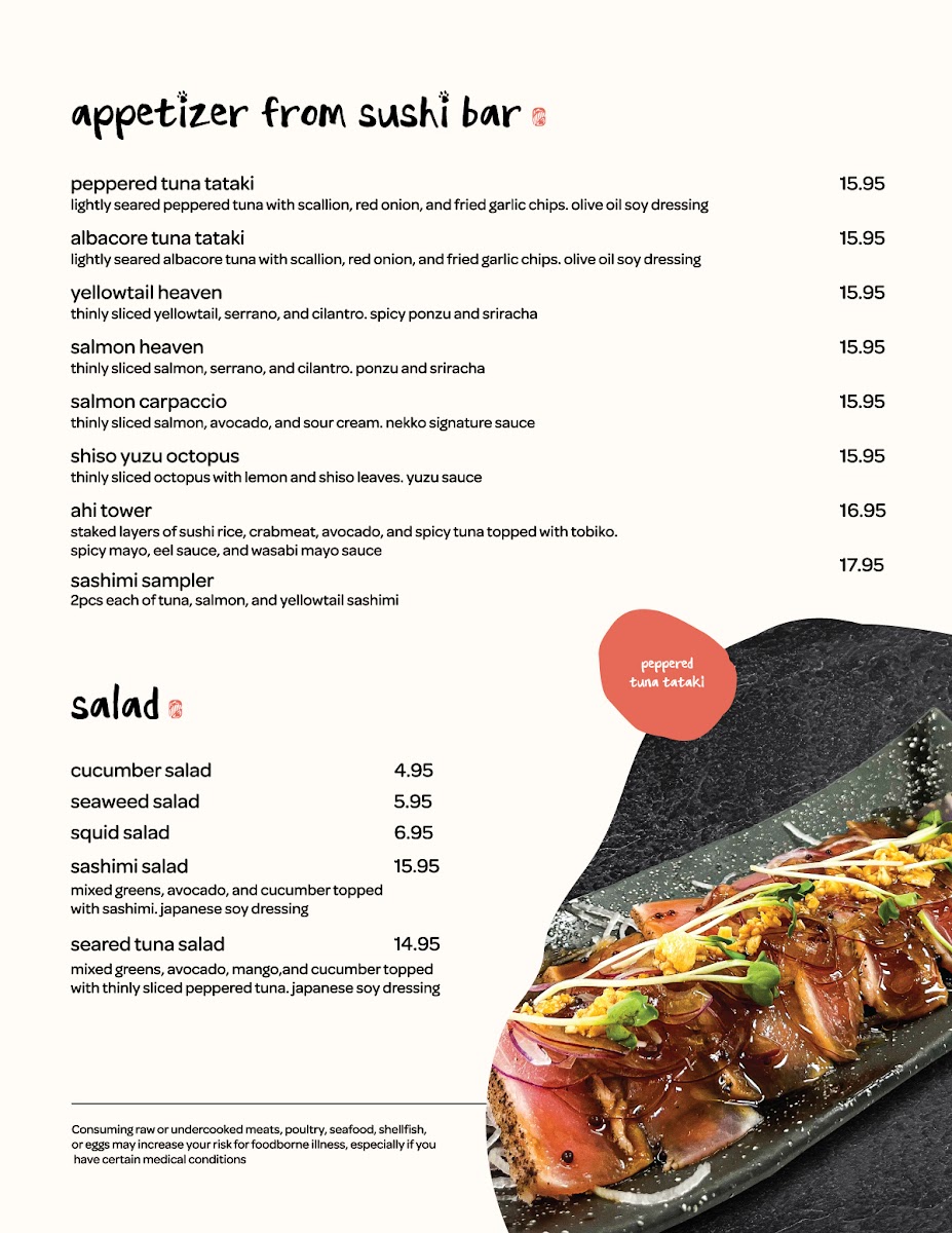 Whether you're seeking a quick snack or a full meal, Sushi Nekko's menu has something for everyone, from sushi aficionados to those looking for a delicious, well-rounded Japanese dining experience.