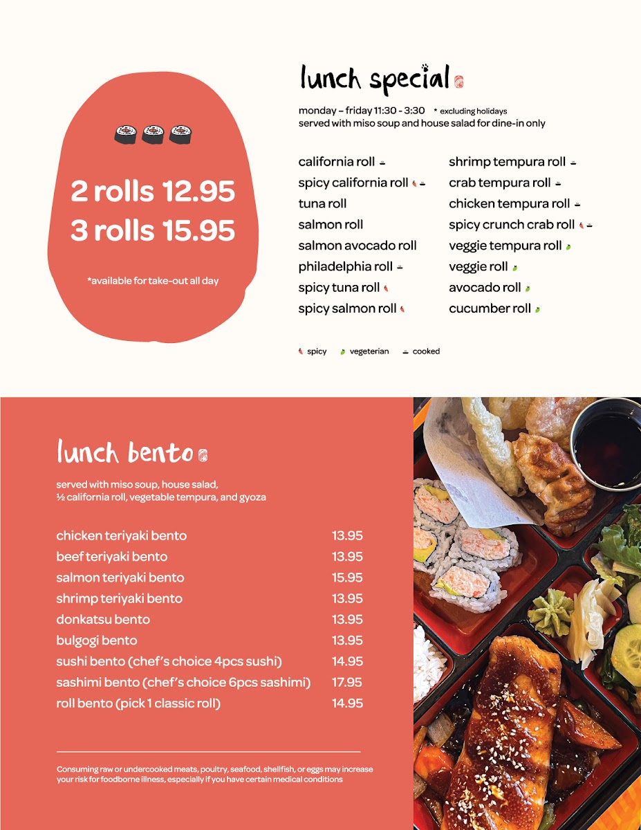 Served with miso soup and salad. consuming raw or undercooked meats poultry seafood shellfish or egg may increase your risk of foodborne illness especially if you have certain medical conditions.